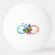 Vibrant infinity with rainbow butterfly on black ping pong ball
