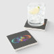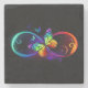 Vibrant infinity with rainbow butterfly on black stone coaster