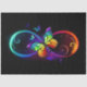 Vibrant infinity with rainbow butterfly on black tissue paper