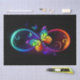 Vibrant infinity with rainbow butterfly on black tissue paper