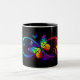 Vibrant infinity with rainbow butterfly on black Two-Tone coffee mug