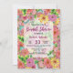 This is more than an invitation; it's a kaleidoscope of hand-drawn flowers set against a soft pink background. The rich, full-bleed pattern bursts with stylised roses, cheerful daisies, and mandala-inspired blooms, rendered in a happy mix of pinks, corals, yellows, lime greens, and cool teals. This intricate, almost Bohemian look captures a free-spirited, garden-party aesthetic. All party details are presented clearly within a soft, translucent white frame, ensuring the text pops against the mesmerising artistry. The entire back is covered with the same beautiful, dense floral pattern—no boring blank spaces here. Easily customise all text to plant the seed for your unforgettable event!