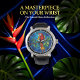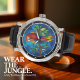 Illuminate your space with the dazzling beauty of this decorative wall clock, showcasing a magnificent red parrot rendered in the captivating style of stained glass. The artistic design features the vibrant bird perched elegantly on a leafy branch, its intricate pattern glowing against a serene blue background. This unique timepiece is more than a way to tell time; it's a stunning art piece that brings the wild beauty of the jungle into your home. With its vivid colours and detailed craftsmanship, this ornamental clock offers a modern yet timeless appeal, making it a perfect gift and a focal point for any room with its bright, tropical charm.