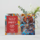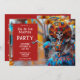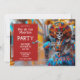 Introducing a stunning Día de Muertos party invitation that merges traditional charm with bold, vibrant artistry. The design features a striking La Catrina, dressed in a vibrant blue outfit that stands out in its elegance and detail. Her impressive hat, adorned with decorative elements, adds a touch of sophistication to her appearance. La Catrina strikes a graceful pose, making an inviting hand gesture that welcomes guests to the celebration.