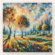 Add a burst of colour to your decor with this vibrant landscape design, featuring rich, vivid hues that capture the beauty of nature. Bold colours of deep blues, fiery oranges, lush greens, and golden yellows create a dynamic and lively scene, making this artwork a striking focal point that brings warmth and energy into any space.