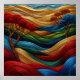 Dynamic and vibrant abstract artwork portraying a flowing landscape with colourful waves, contrasted by uniquely hued and textured trees, conveying a sense of creativity, hope, and imaginative artistry.