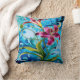 Vibrant Lily Blooms Against Blue Swirls Cushion