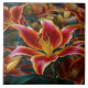 Vibrant Lily Blooms in a Garden at Dusk Ceramic Tile
