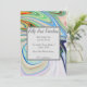 A stylish silver frame and text on a colourful liquid marble background birthday invitation.