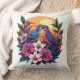 Vibrant Lovebirds at Sunset with Tropical Flowers Cushion