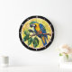Vibrant Macaw Parrot and Tropical Leaves Design Large Clock