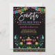 Fiesta themed baby shower invitation featuring vibrant Mexican inspired patterns and colorful confetti