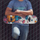 This vibrant modern designer skateboard is a fusion of bold colours and cutting-edge design, crafted for riders who want to stand out. Featuring a dynamic graphic deck and durable, high-performance wheels, it offers both style and functionality for street or park skating. The striking colours and sleek construction make it a true statement piece, built to turn heads while delivering a smooth, confident ride.