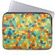 Vibrant mosaic pattern composed of various coloured shapes, primarily hexagons and polygons. The colours include bright shades of orange, yellow, turquoise, and blue, creating a lively and energetic visual effect.