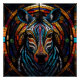 Step into a world of color and creativity with this stunning mosaic-style zebra artwork. This captivating design showcases a zebra's face composed of vivid geometric shapes, creating a lively and intricate pattern. Dominant hues of blue, red, orange, and yellow blend seamlessly to highlight the zebra's striking stripes and expressive eyes. The background features a circular, stained-glass inspired design, adding to the overall vibrancy and uniqueness of the piece. Perfect for art lovers and wildlife enthusiasts, this exceptional artwork is ideal for prints, posters, and various home décor items, bringing a touch of exotic charm and boldness to any space.