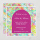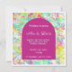 "Stand out with this vibrant wedding invitation featuring a lively multicolored background and a bold magenta arched centerpiece. Perfect for couples seeking a modern and colourful touch to their wedding stationery. Easily customisable for your special day."