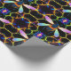 Vibrant Neon Honeybee with Abstract Hexagonal Wrapping Paper