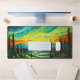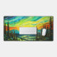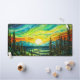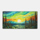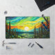 This creative desk mat features an illustration of quite colourful sunset, deep in the forest.