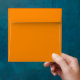 Disco vibes make a splash in the mailbox with this vibrant orange and hot pink envelope personalised with your monogram on the front and return address on the back flap. Bright and Colourful.
