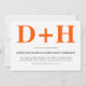 Vibrant orange and white initials bold typography wedding invitation. The back includes a geometric pattern.