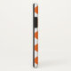 Protect your iPhone X with an impact resistant Case-Mate Tough case featuring a bold geometric pattern of large and small white diamonds on an orange background. The vibrant orange forms a lattice which separates the white diamond shapes.