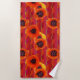 Large poppy flower heads adorn a gorgeous wavey-woven designer background with orange, red, dark pink and lime green. By Melissa J Barrett