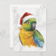 Vibrant Parrot Portrait in Santa Hat Holiday Postcard