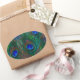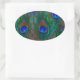 Vibrant Peacock Feathers Etching Style Decor Oval Sticker