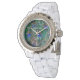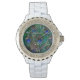 A vibrant colourful style peacock feathers graphic decor on a fine custom personalised fashion watch.