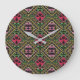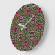Vibrant Pink and Green Abstract Fabric Art Large Clock
