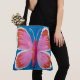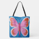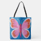 Vibrant Pink Butterfly on Blue Background Tote Bag