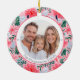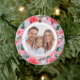 Vibrant Pink Christmas Floral 2 Sided Photo Ceramic Ornament