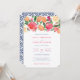 Cute kumquats and Citrus Slices accentuated by hot pink watercolor floral contrasts for these on-trend Wedding invitations. The reverse design is taken from a vintage Azulejo (blue white tile) design.