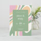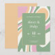 Live up your wedding celebration with our unique abstract style invitations! Bring charm and elegance to your event with a vibrant pink, green and cream abstract background with wavy lines.
