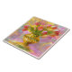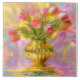 Vibrant Pink Tulips in Golden Vase Ceramic Tile