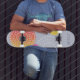 Vibrant Pink Yellow Random Mandala on Blue Name Skateboard