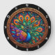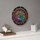 Elevate your interior design with the breathtaking artistry of the Vibrant Plumage Peacock clock. This sophisticated timepiece features a high-definition graphic centred on a regal peacock with an expansive, fan-like display of feathers. The artwork utilises a saturated palette of electric blue, fiery magenta, and emerald green, with each feather "eye" intricately detailed to create a sense of shimmering movement. The central figure is encased in a rich, copper-toned circular frame featuring deep-relief scrollwork and elegant braided textures. While the design masterfully replicates the dimensional depth of artisanal mosaic and hand-carved wood, this is a durable high-definition graphic application on a premium round clock face. It serves as a prestigious and colourful focal point for any luxury home or professional office setting.