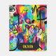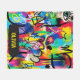 This colourful, personalised blanket features a high-energy abstract art composition that combines bold colours, dripping paint, scribbled lines, and elements of graffiti and pop art.