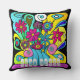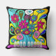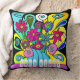 Vibrant Psychedelic Flowers in a Vase Cushion