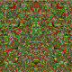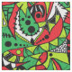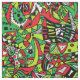This pattern features an intricate hand-drawn composition, blending bold neon green, fiery red, and contrasting black & white geometric and organic shapes. The dense, all-over print creates a mesmerising, busy yet balanced pattern, ideal for eye-catching apparel, upholstery, and home decor projects.