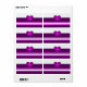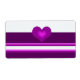 A classy label featuring a vibrant purple striped design on a white background. A shaded purple heart in the centre.