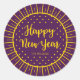 Vibrant Purple Starburst Script Happy New Year Classic Round Sticker