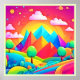 Immerse yourself in a vibrant and playful cartoon landscape with this captivating artwork featuring colourful mountains, trees, and a vibrant sky (This Design Made With AI). Place Order Today and Embrace the Joy of Shopping!