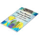 Personalise this colourful full-colour promotional business product with your cleaning or janitorial company name and details. Features aqua and bright blue rays of light background with a yellow gloved hand holding feather duster, a green bucket with rag, and blue spray solution.