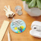 Personalise this colourful full-colour promotional business product with your cleaning or janitorial company name and details. Features aqua and bright blue rays of light background with a yellow gloved hand holding feather duster, a green bucket with rag, and blue spray solution.