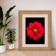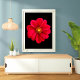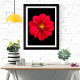This stunning photograph captures the beauty of a vibrant red dahlia in full bloom. The flower's rich colour and intricate details are showcased against a dramatic black background. This captivating image would make a beautiful addition to any home or office.