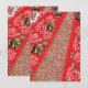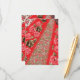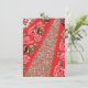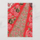 Vibrant red fabric featuring intricate floral and enclosure card