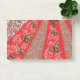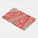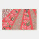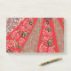Vibrant red fabric featuring intricate floral and post-it notes