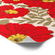 This striking design features bold red flowers with vivid yellow centres, set against a backdrop of olive green leaves. The intricate floral pattern is both elegant and eye-catching, making it a perfect choice for a variety of products from home decor to fashion accessories. The contrast between the bright red blooms and the subtle green foliage creates a harmonious and visually appealing design.