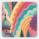 Transform your packaging, invitations, and celebration sets with this vivid retro dreamscape sticker — a kaleidoscope of joy wrapped in colour. This design blends turquoise, coral, tangerine, and violet into sweeping rainbow-like arcs, crowned with a fantasy-style dome and whimsical forest silhouettes. Perfect for any occasion that calls for personality, creativity, and visual storytelling.
